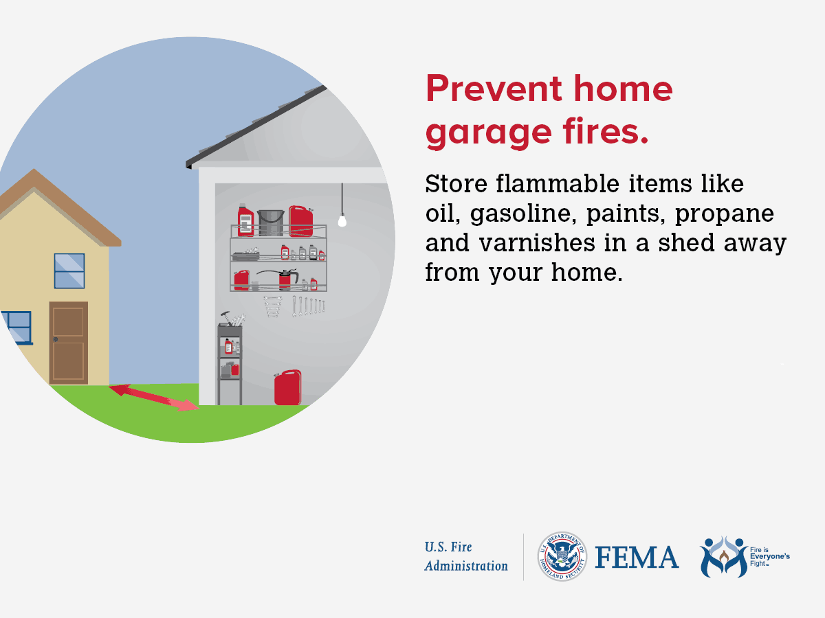 • Store oil, gasoline, paints, propane and varnishes in a shed away from your home.